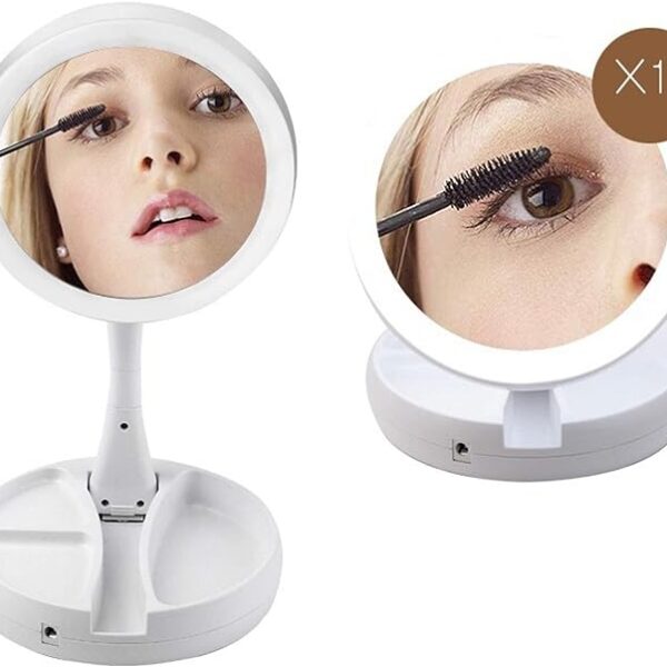Espelho Facial de Camarim Led Articulável Com Aumento 10x para Maquiagem Portátil