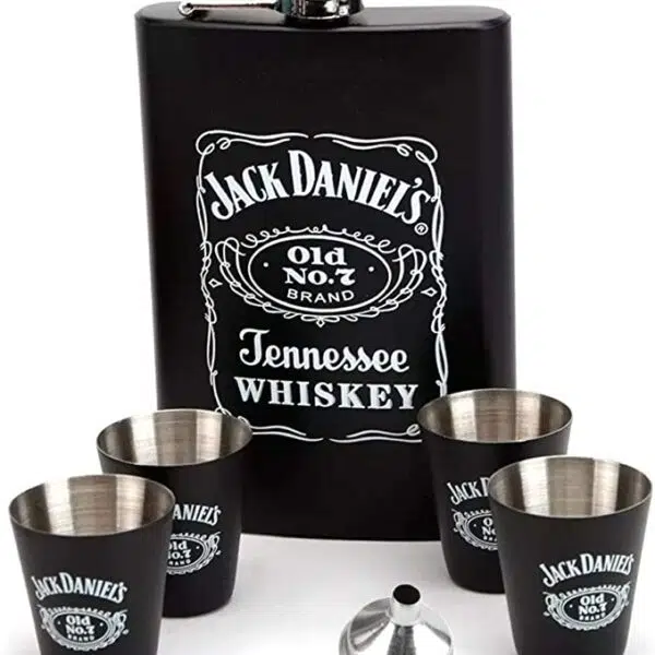 Em até 1x de R$35,00 sem juros À vistaR$31,50no Pix Kit Garrafa De Bolso Cantil Jak Daniels 04 Mini Copos