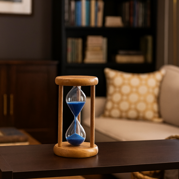 Charmosa e funcional, a ampulheta é um excelente brinde para empresas que desejam oferecer um presente simbólico e sofisticado. Com estrutura em vidro transparente e sustentação por 3 hastes de madeira, ela combina beleza, simplicidade e significado e a areia colorida em movimento transmite tranquilidade e pode representar pausas estratégicas, foco em tarefas ou até momentos de reflexão.