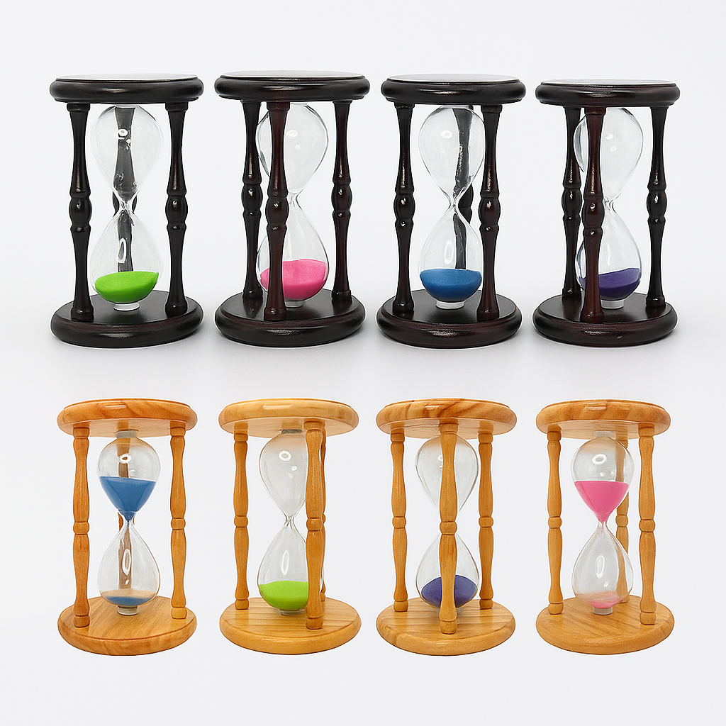 Esta linda ampulheta decorativa une o charme clássico do vidro com a sofisticação da base e hastes em madeira. Ideal como brinde corporativo, ela transmite mensagens como equilíbrio, foco, gestão de tempo e pausa consciente.