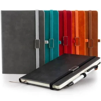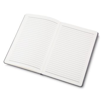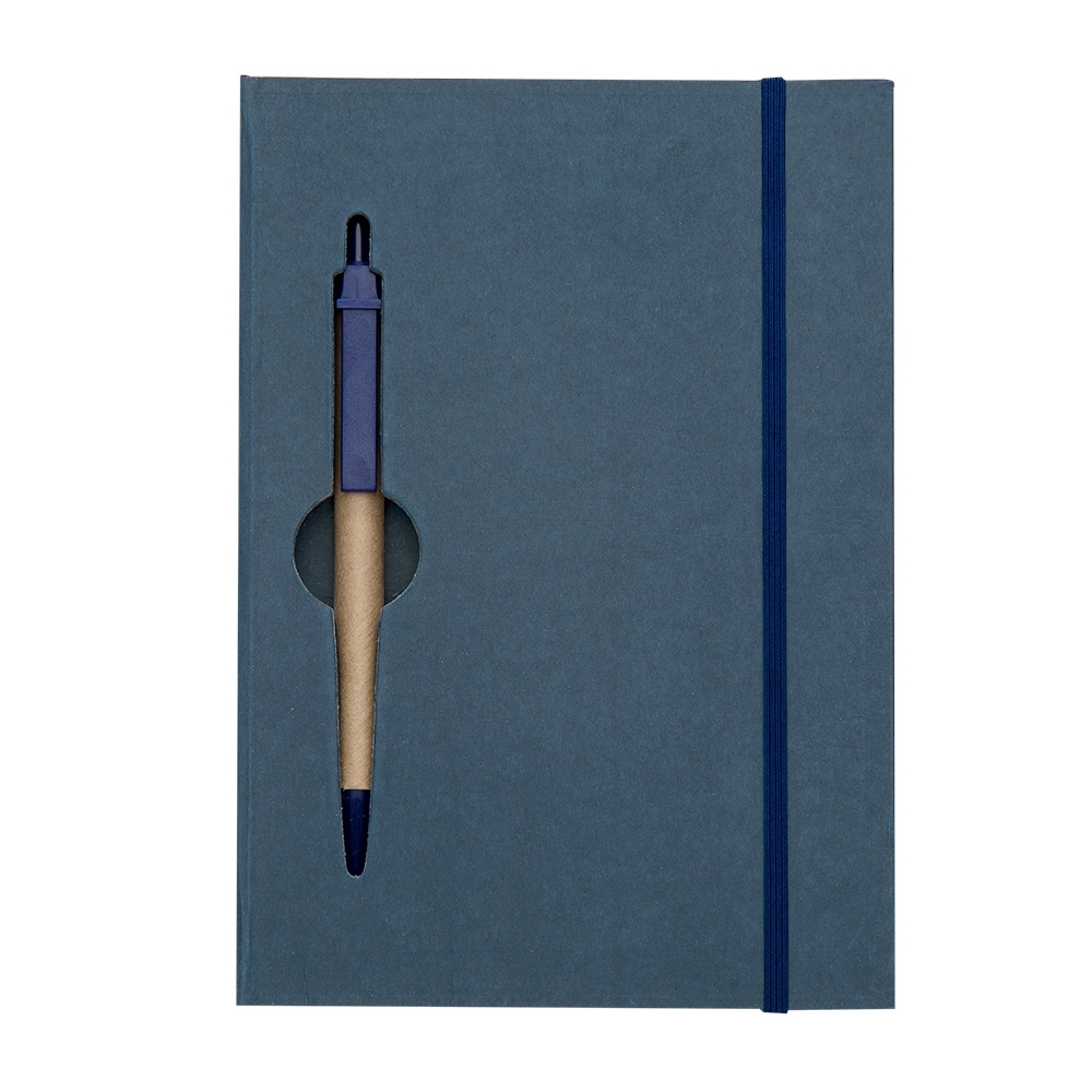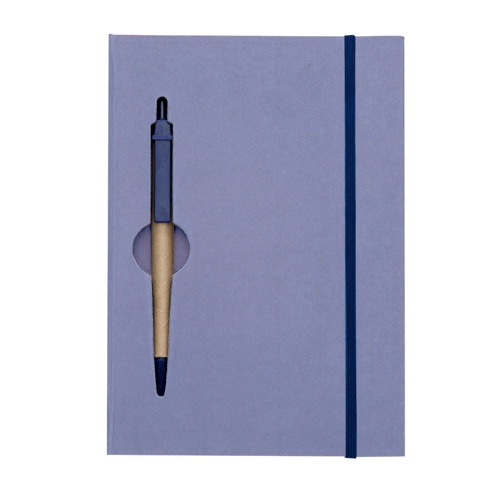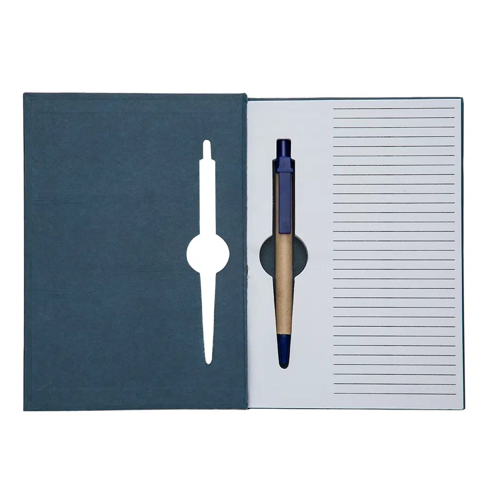 Este bloco de anotações ecológico possui capa rígida com acabamento natural e um design exclusivo com vazados na capa e no miolo, que funcionam como suporte para a caneta – um detalhe funcional e diferenciado.