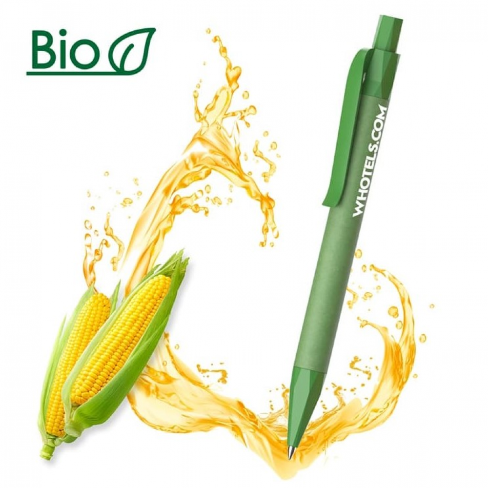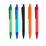 Caneta ecológica com corpo em papel reciclado colorido e detalhes em plástico PLA biodegradável. Uma escolha criativa e sustentável para ações promocionais, eventos e campanhas que desejam transmitir responsabilidade ambiental e modernidade.