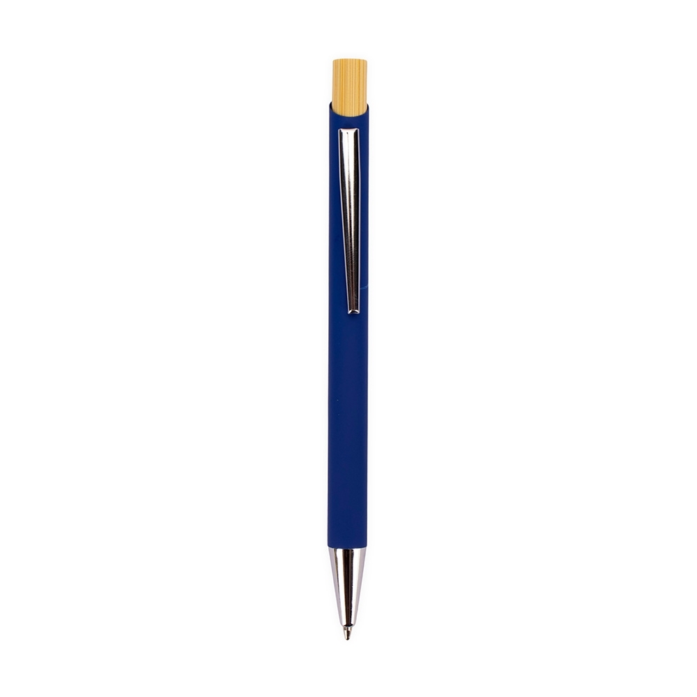 Caneta esferográfica com carga azul de 1.0mm. Possui construção metálica e acionamento por clique em bambu, o que proporciona uma pegada leve e maior precisão durante o uso.