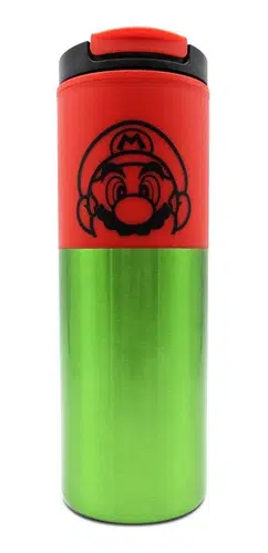 Copo para viagem Super Mario 500 ml/plástico aço inoxidável verde/vermelho.