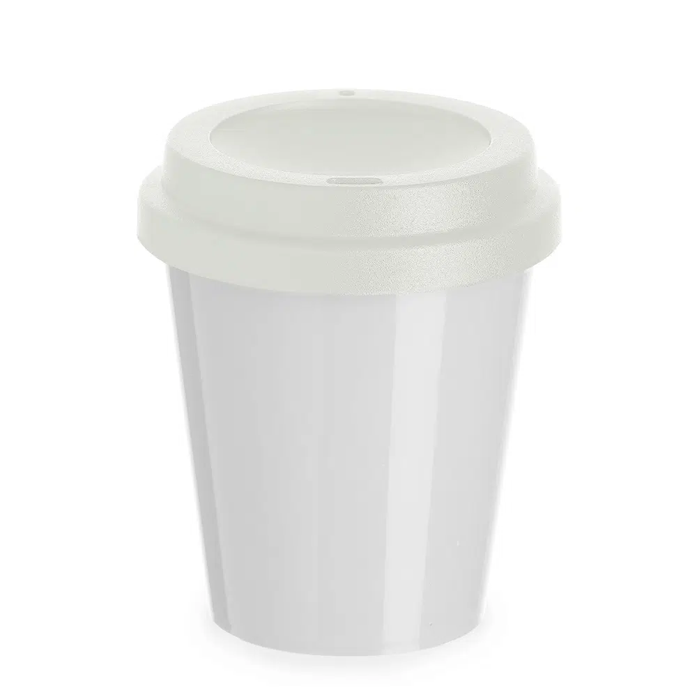 Copo plástico com capacidade de 350ml, tampa com bocal.