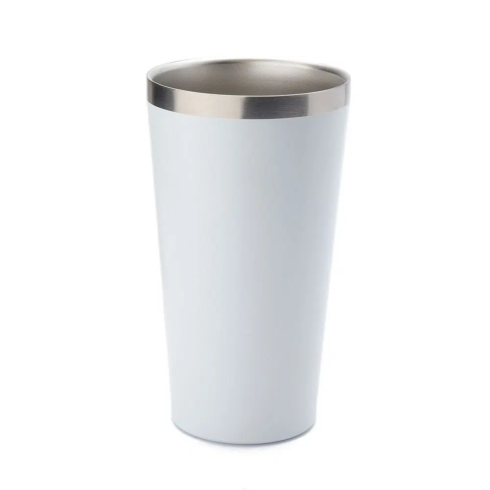 Copo térmico em aço inox, parede dupla e com detalhe em aço escovado.