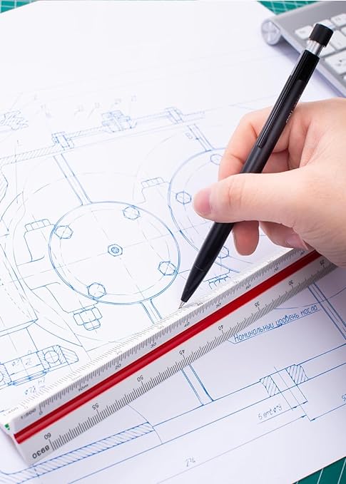 Escalímetro produzido em material plástico para cálculos e apontamentos.