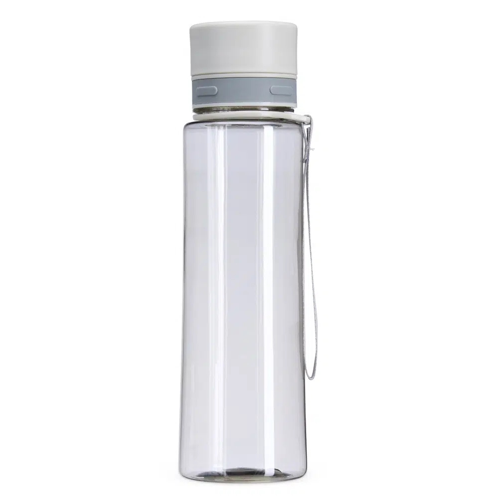 Garrafa de 780ml com tampa rosqueável e bocal, tampa protetora e alça em nylon para facilitar o transporte.