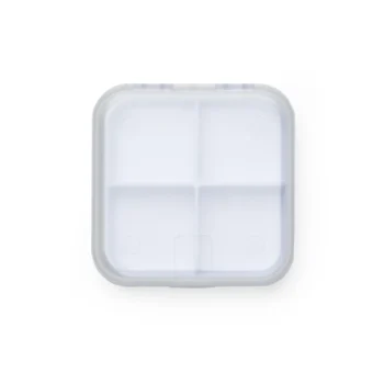 Material plástico vermelho de pintura fosca, possui duas divisórias na parte interna.