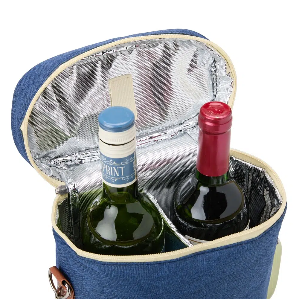 Bebidas geladinhas e frescas por muito mais tempo! O nosso porta-garrafas térmico é excelente para garantir a temperatura das bebidas em qualquer lugar. Feito em nylon com detalhes em couro sintético, contém divisória integrada à bolsa. Ele comporta até duas garrafas e ainda conta com um suporte para abridor ou outros acessórios. Além disso, vem com alça de mão e alça de ombro ajustável e removível para maior conforto e praticidade. E para torná-lo ainda mais especial, oferece espaço para personalização, deixando-o único e exclusivo.