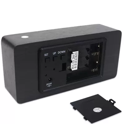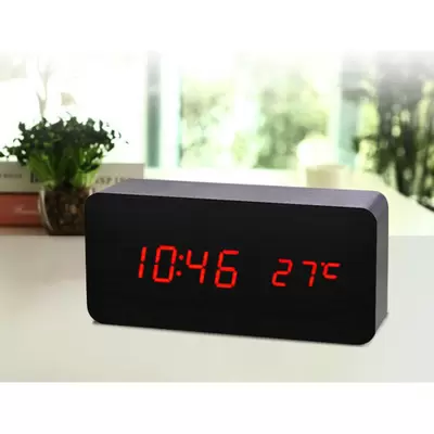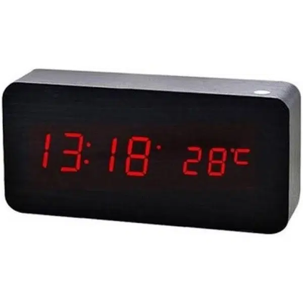 Com seu design que imita madeira, seus LEDs brancos e dígitos grandes de fácil visualização (inclusive em ambientes muito iluminados), você deixará seu ambiente muito mais estiloso. Pode escolher entre os diferentes modos de exibição (apenas hora e temperatura; hora data e temperatura; apenas data), definir 3 alarmes diferentes, e ainda utilizar o modo de economia de bateria, em que o relógio irá acender apenas com algum sinal sonoro (uma palma, estalo ou apenas um toque no relógio).